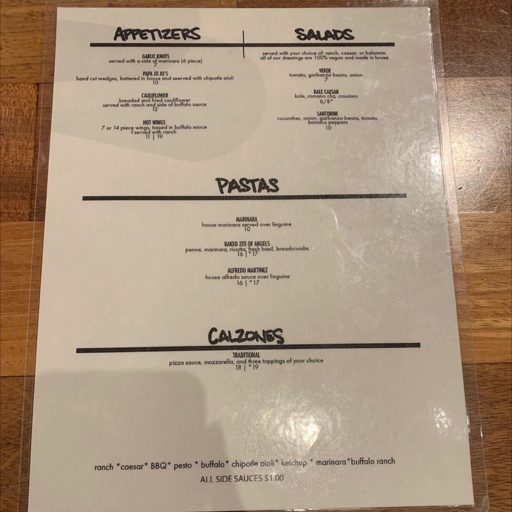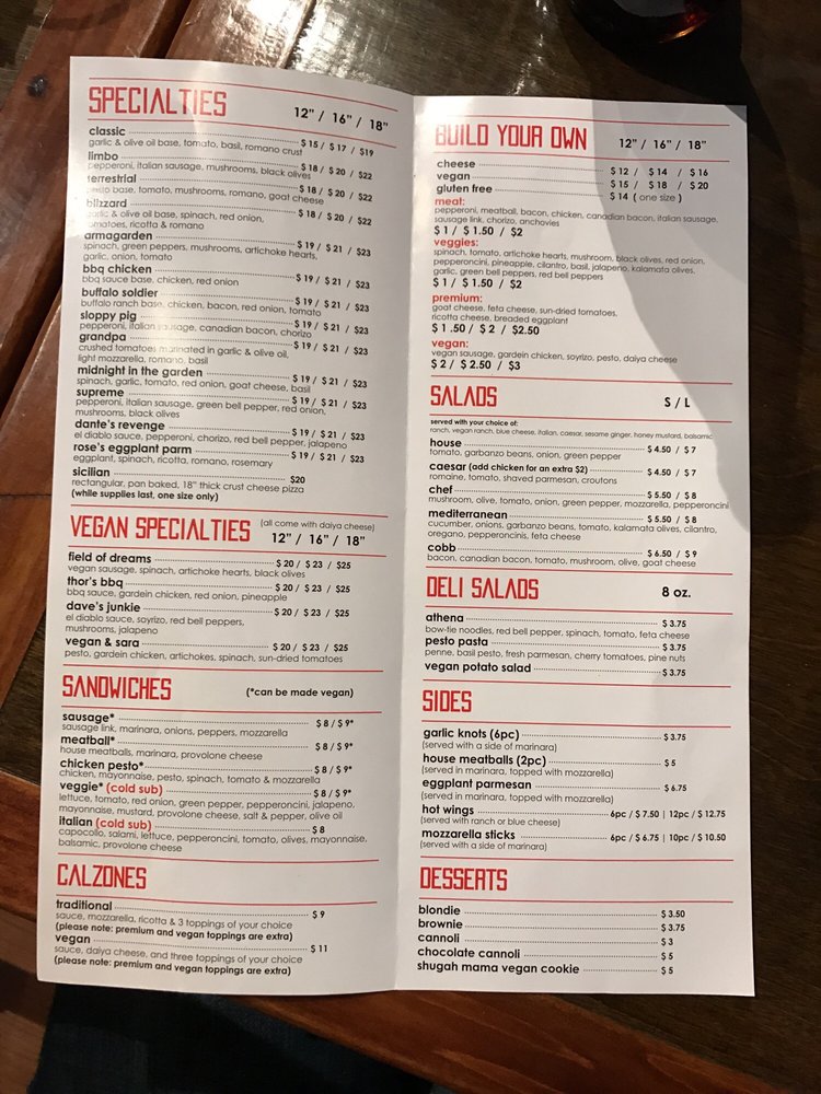 18"pan baked pizza, garlic & olive oil base, vegan cashew mozzarella, smoked almond ricotta, crushed tomato, vegan pesto drizzle, almond parmesan