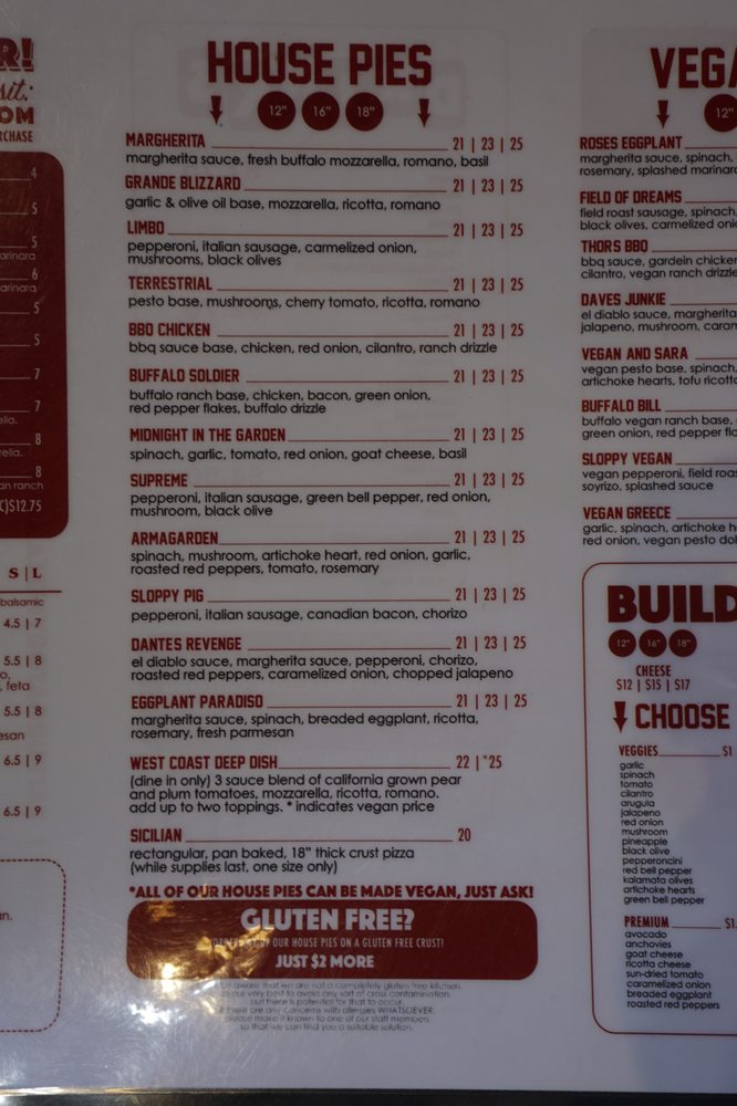 pizza sauce, "house cashew mozzarella",& 3 toppings ofyour choice