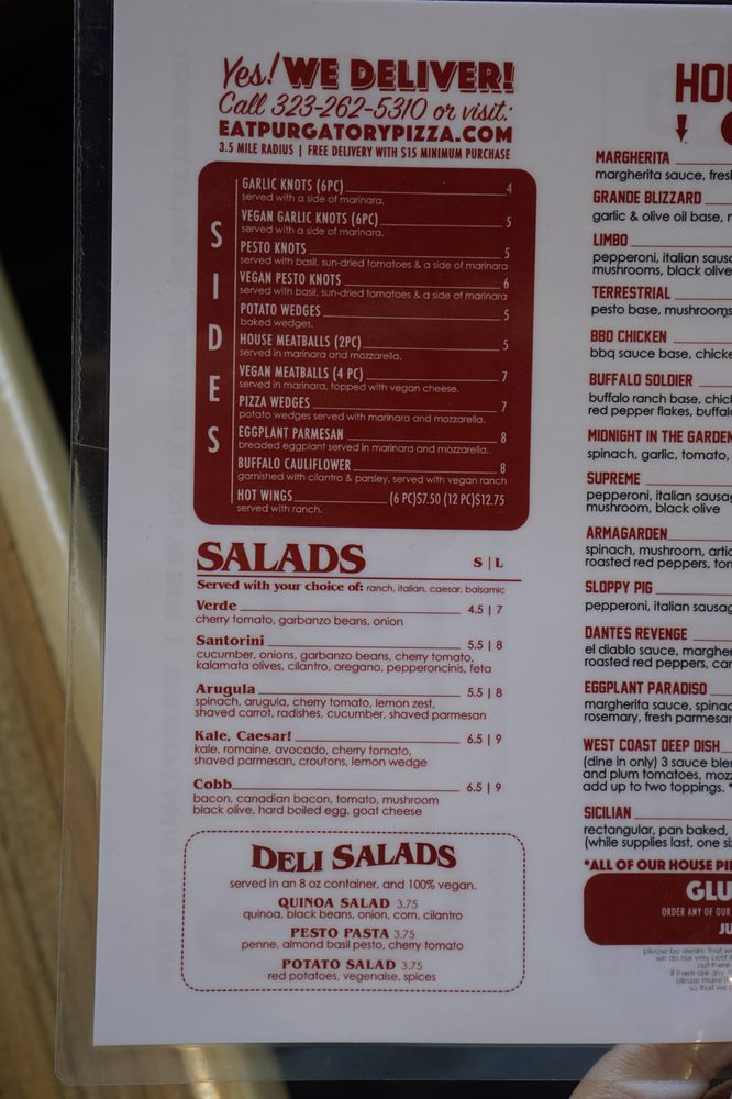 Purgatory Pizza, located in Los Angeles, offers a diverse menu of build-your-own pizzas, vegan options, and specialty pizzas like the White Iverson and Midnight in the Garden. Customers rave about the quality of the food, with top picks being Dante's Return and the Sloppy Pig. The modern ambiance, friendly service, and additional menu items like cookies, wedges, and beer add to the overall experience. With a focus on fresh ingredients and flavorful combinations, Purgatory Pizza stands out as a must-visit spot for pizza lovers. The positive reviews from satisfied customers highlight the consistent quality and attention to detail that make this establishment a standout in the area. Overall, Purgatory Pizza delivers a fantastic dining experience with a unique selection of pizzas and a welcoming atmosphere.